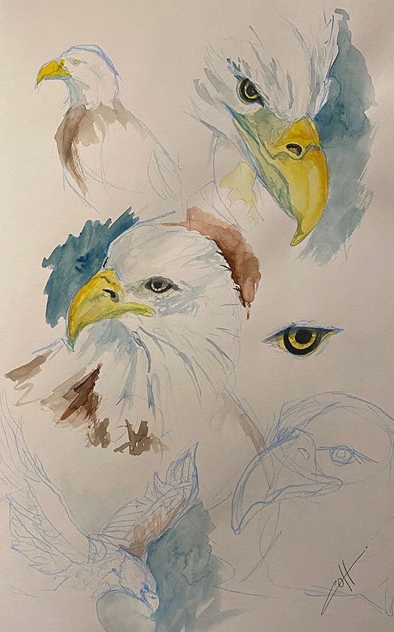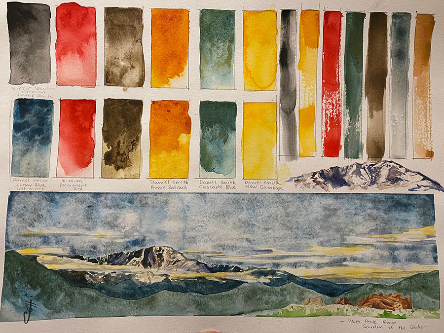 As a native of Colorado Springs and coming from a family of artists, I have always been drawn to art related to mountains and wildlife. As a child I was an avid artist, feverishly sketching and illustrating. However, as I got older and life got busier, I set it aside and have only recently returned – thanks to my elder brother’s prompting. My comfort with sketching and illustration have laid the foundation for my approach to watercolor.