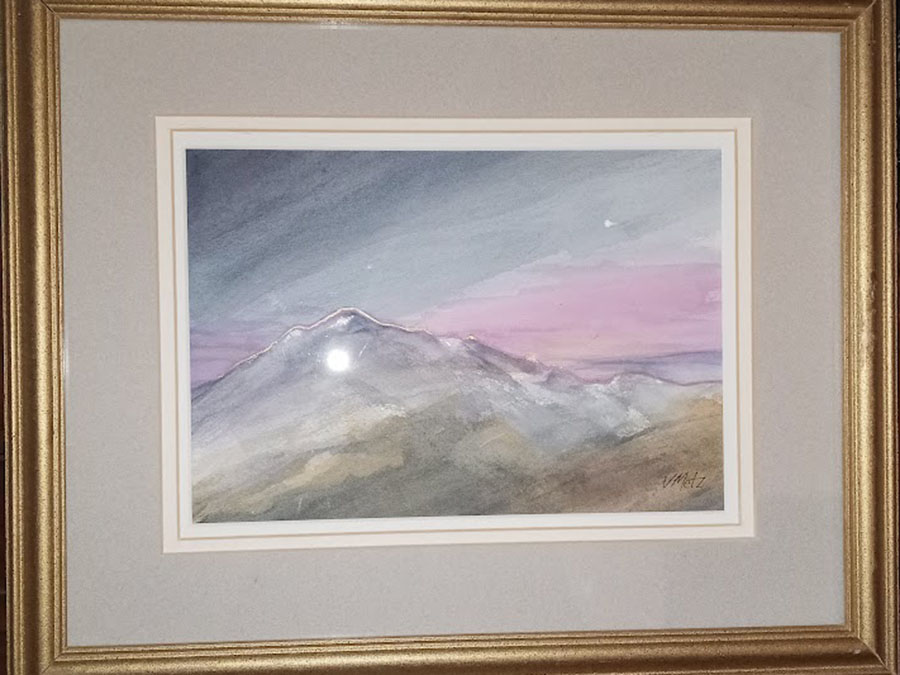 Now living in Colorado Springs, Vicki draws, paints mostly in watercolor, and sometimes hand builds pottery, aiming to incorporate the beauty of life in the Rockies. Current memberships include Pikes Peak Watercolor Society, Pikes Peak Arts Council, Fremont Center for the Arts, and Mountainside Art Guild. She enjoys road-trips with Art riding shotgun.
