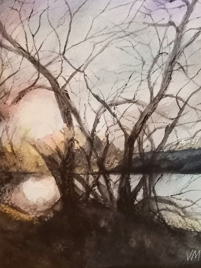 Lately I have been painting landscapes more than anything else. In addition to watercolor, I work in colored pencil and pottery.