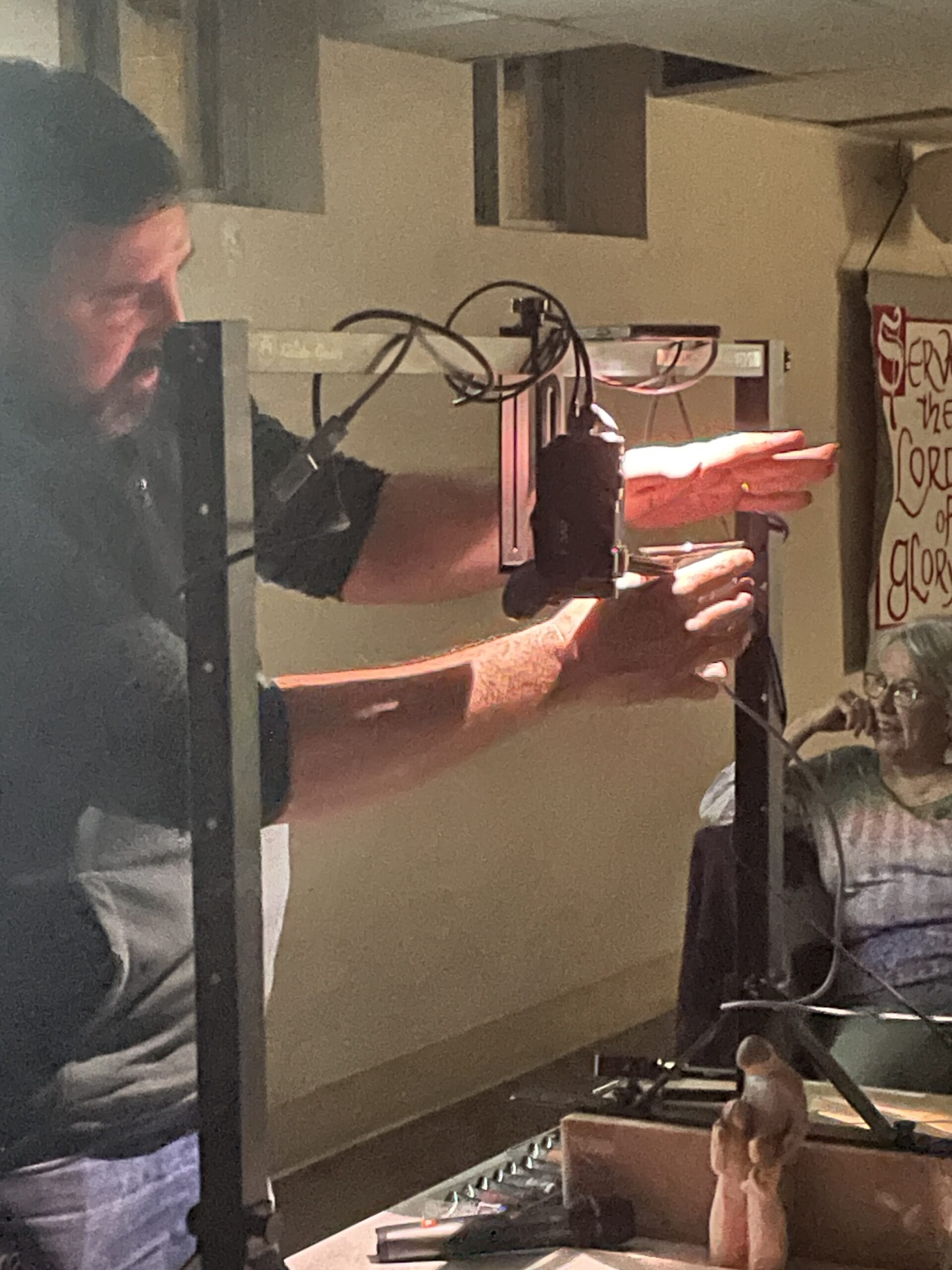 He also showed us how reflected color can change a color, by holding his hand under a light, then placing a colored object below his hand. The color of his palm changed as he used different colored objects.